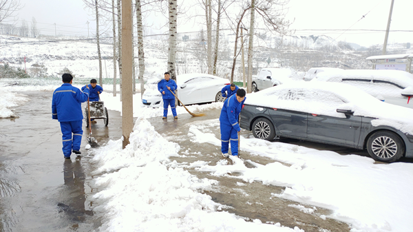 雪天寒冷,也抵擋不住全體職工對生活和工作散發的熱情和溫暖,“鏟雪官”們在白坪分公司成為一道亮麗的風景線。