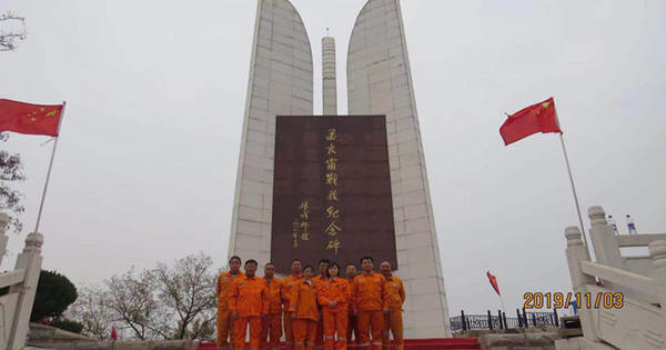 隨后,大家一起登上孟良崮山頂,瞻仰孟良崮戰(zhàn)役紀(jì)念碑,站在山頂遠(yuǎn)眺,當(dāng)年的孟良崮戰(zhàn)場盡收眼底,山巒迭起,地勢險峻,戰(zhàn)役的艱難程度可想而知。回首那段激情燃燒的歲月,給大家?guī)淼某怂枷氲恼鸷场⑿撵`的洗禮,更有一種不忘初心、勇往無前的熱血豪情。