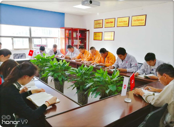 會上,項目經理劉進德帶領大家認真學習了劉書記在中材礦山建設有限公司開展的“不忘初心、牢記使命”主題教育部署會上的重要講話并學習了《習近平關于“不忘初心、牢記使命”論述摘編》《習近平新時代中國特色社會主義思想學習綱要》兩本書籍。