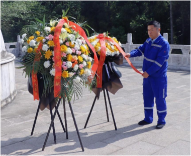 驚雷浮雕、陳獨秀銅像、新青年碑刻......走過柏林墓道,來到陳獨秀先生的墓前,項目執行經理張作鋼同志代表公司敬獻花圈,帶領全體黨員和青年同志,懷著無比崇高的敬意,恭敬地向墓碑三鞠躬,用行動表達對先生的敬仰之情。
